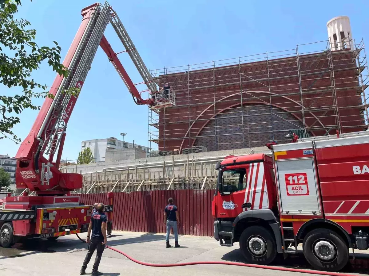 Batman’da Atatürk Parkı’na bitişik alanda imali devam eden cami inşaatında yangın çıktı.