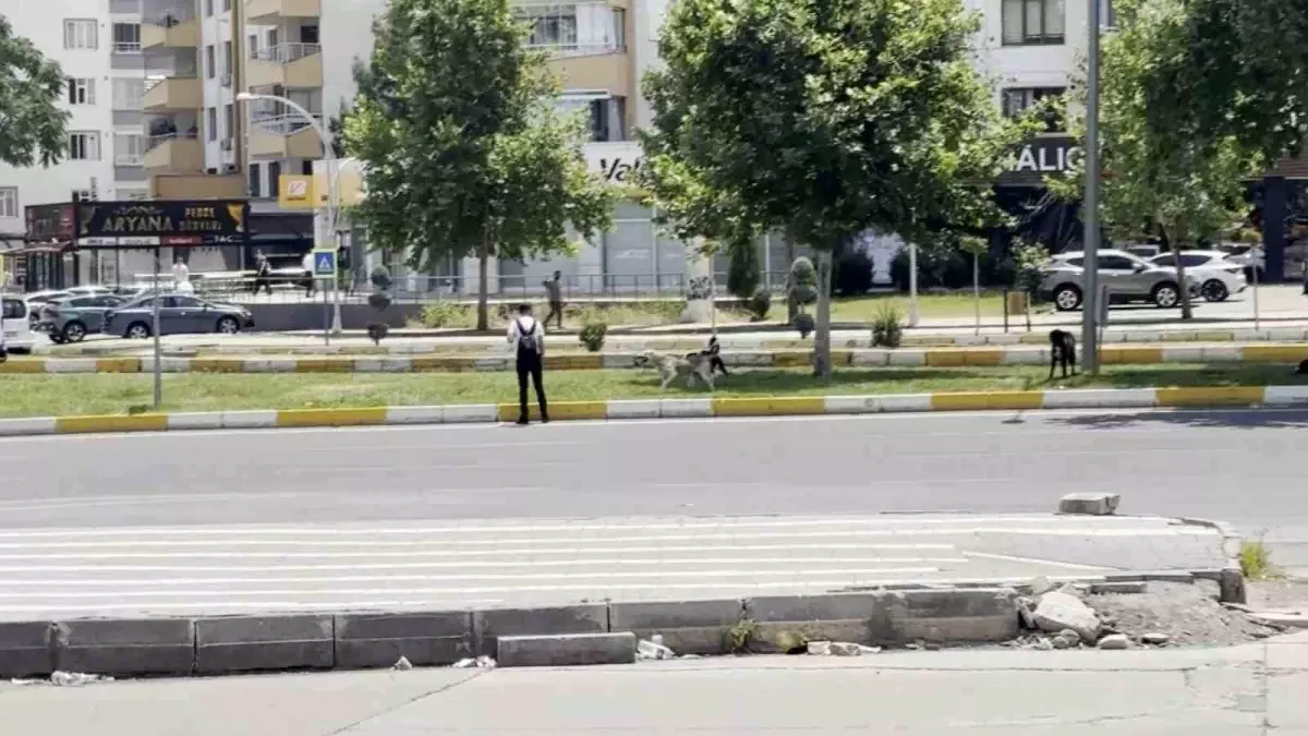 Diyarbakır’ın merkez Kayapınar ilçesinde başıboş köpekler yoldan geçen vatandaşları korkuttu.