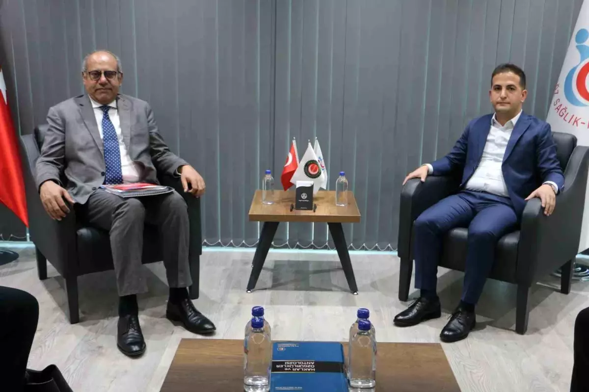 Uluslararası Çalışma Örgütü (ILO) Türkiye Ofisi Yöneticisi Yasser Hassan, HAK-İŞ Konfederasyonu Diyarbakır İl Başkanı ve Öz Sağlık-İş Sendikası Şube Lideri Mehmet Aküzüm ile görüştü.