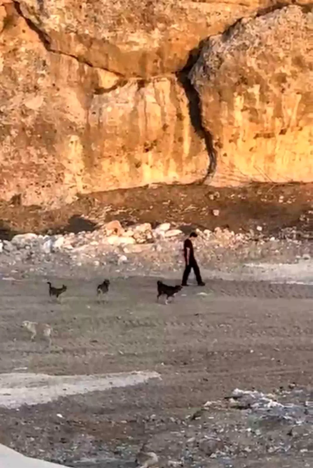 Bir vatandaşın cep telefonu kamerasına yansıyan imajlarda, adamın köpeklerin saldırgan tavrına aldırmadan itidalli biçimde yoluna devam ettiği görülüyor. Olayda rastgele bir yaralanma yaşanmazken, adamın tutumu etraftaki vatandaşların takdirini topladı. – MARDİN