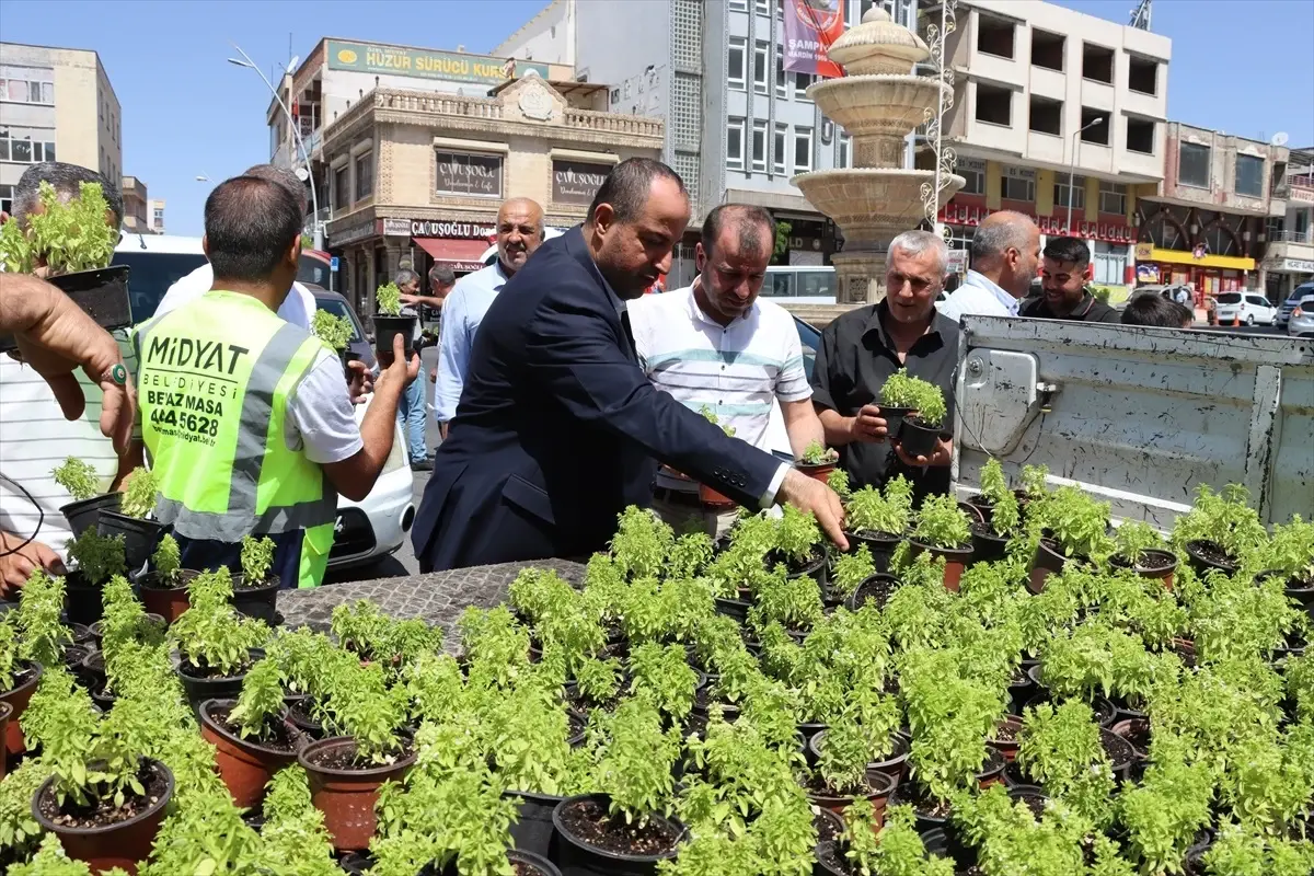Mardin’in Midyat ilçesinde, vatandaşlara fesleğen ve reyhan çiçeği dağıtıldı.